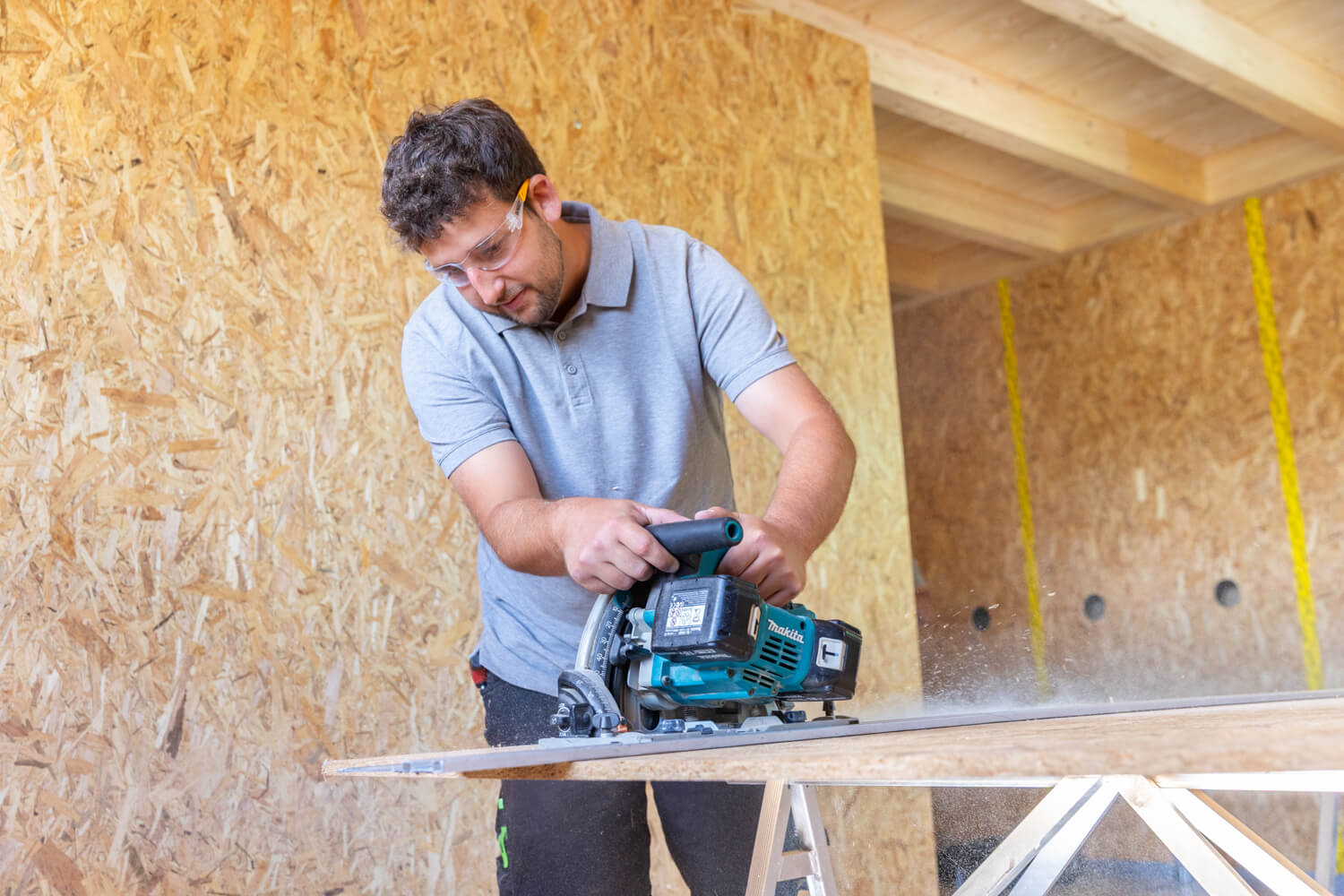 Hoher Vorfertigungsgrad im Holzbau reduziert die Bauzeit deutlich – weniger Lärm und Staub für Sie.
