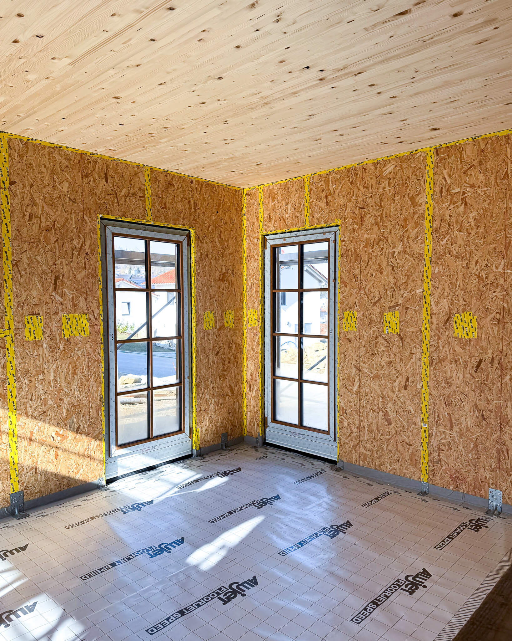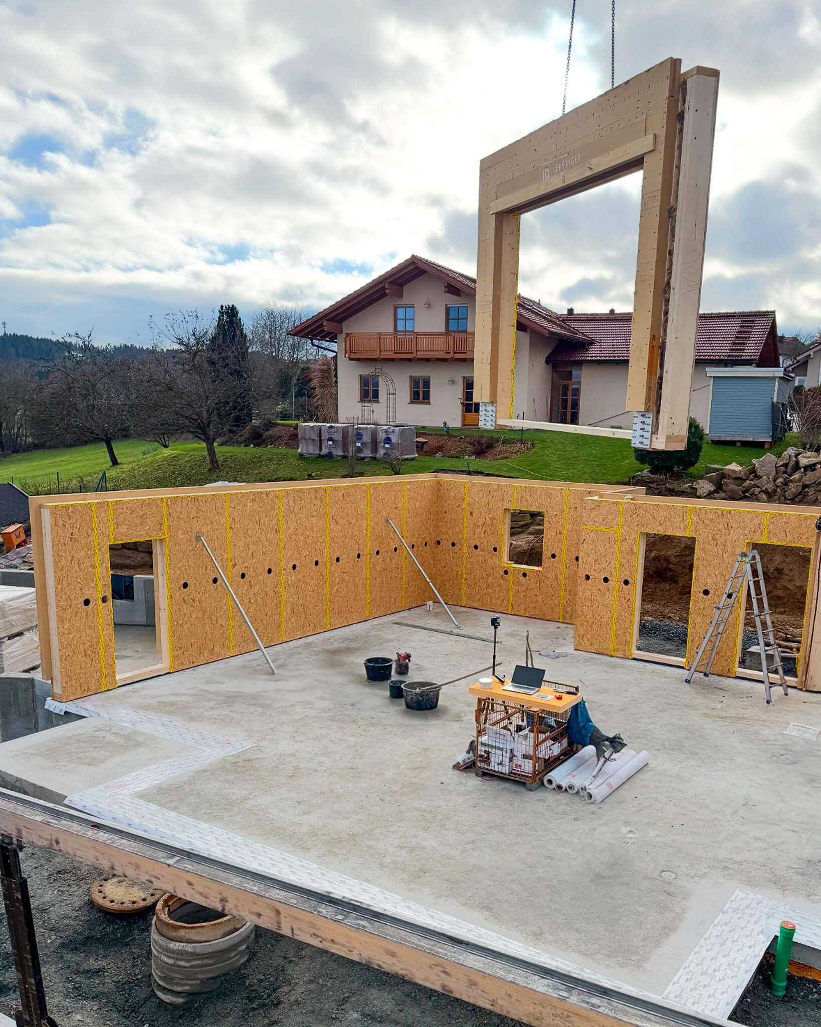 Ein KfW-40-Haus in Holzrahmenbauweise entstand hier von der Planung bis zur Fertigstellung aus einer Hand. Die ökologische Holzfaserdämmung sorgt für exzellenten Wärmeschutz und ein gesundes Raumklima. Durch die präzise Vorfertigung der Bauteile konnten die Zimmererarbeiten effizient und witterungsunabhängig ausgeführt werden.